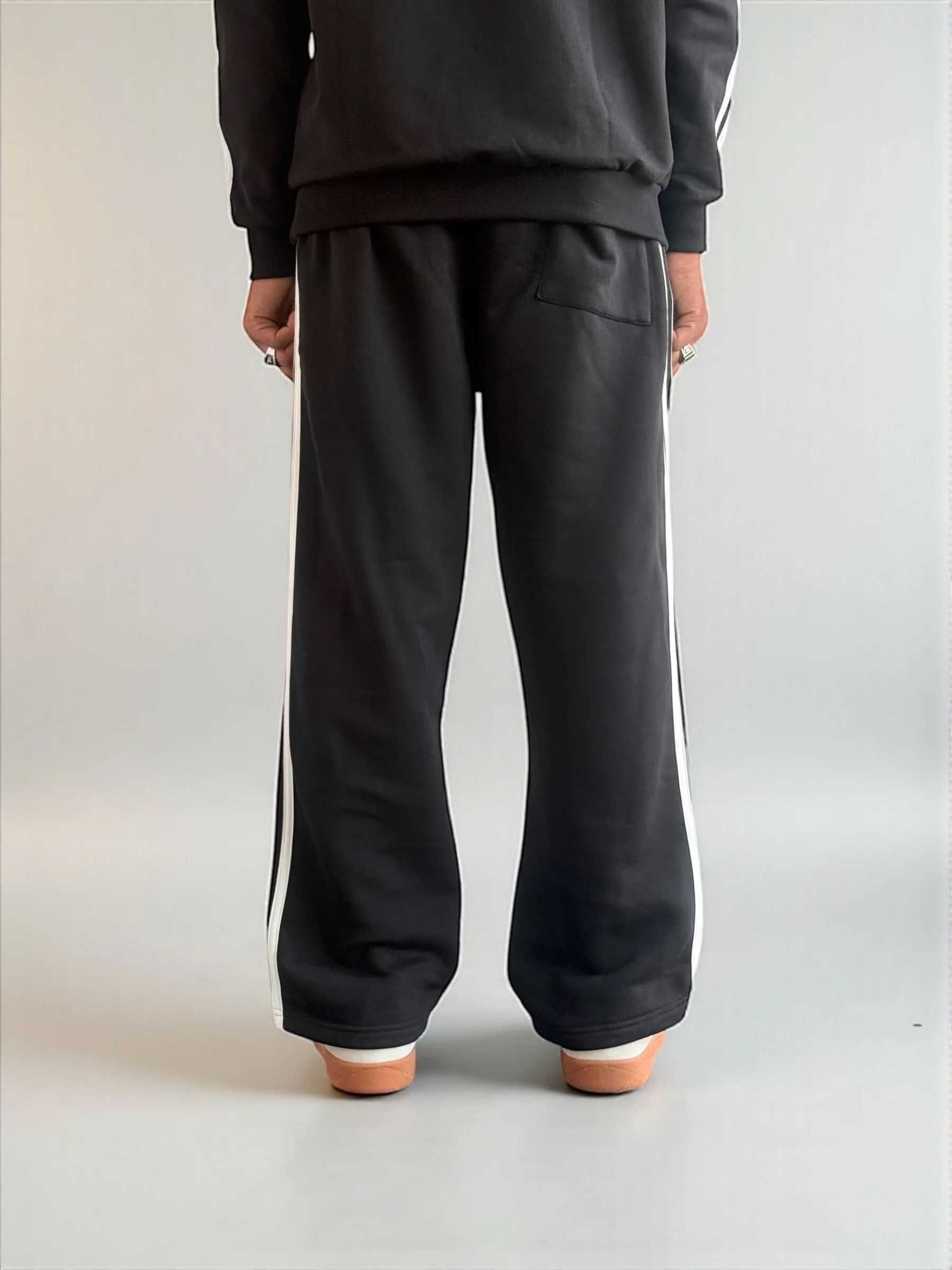 Classic Grey Side-Stripe Track Pants (Black cotton with White strap c)