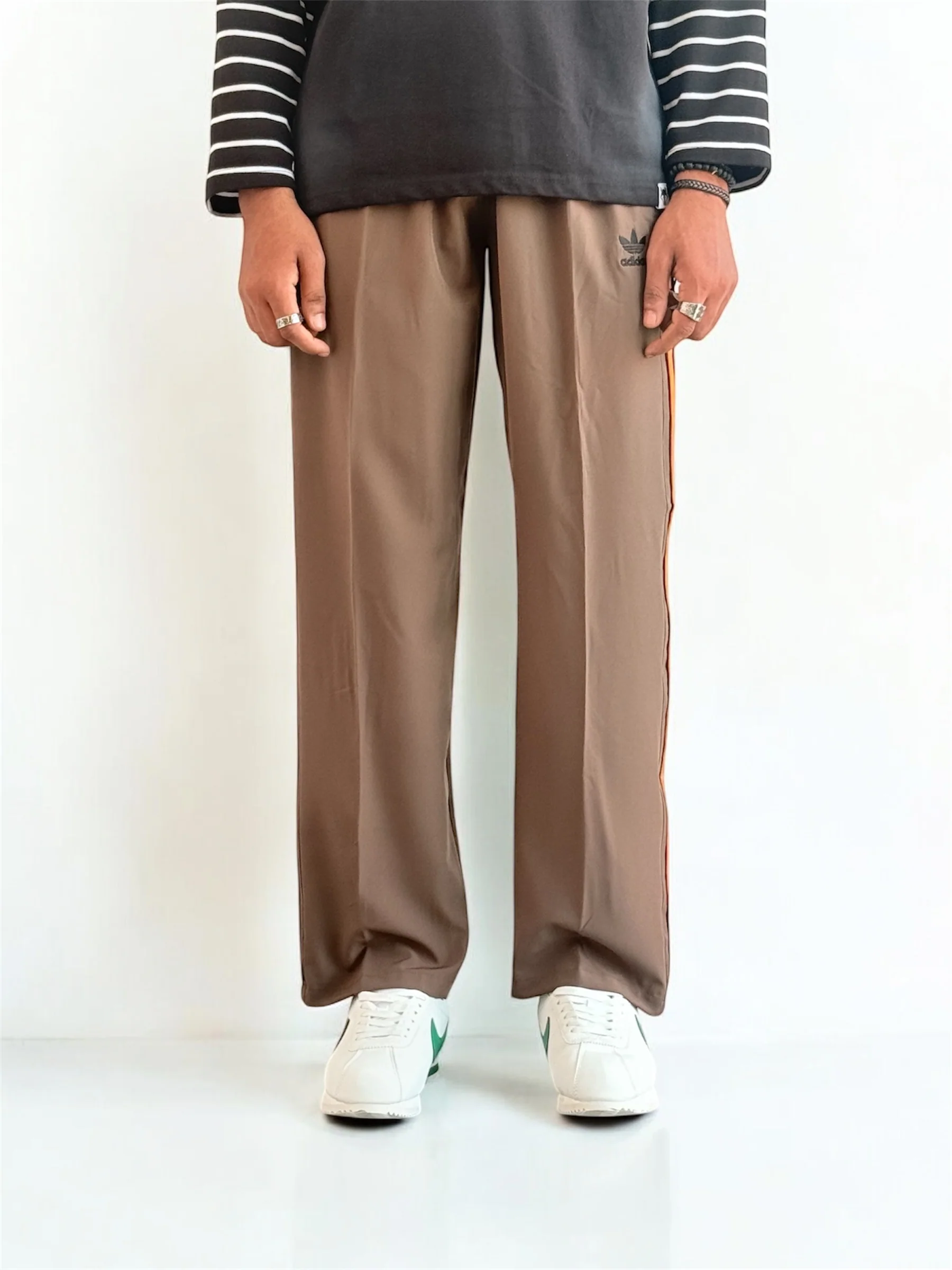 Premium straight-fit track pants for a clean, modern look. (brown with orange straps)