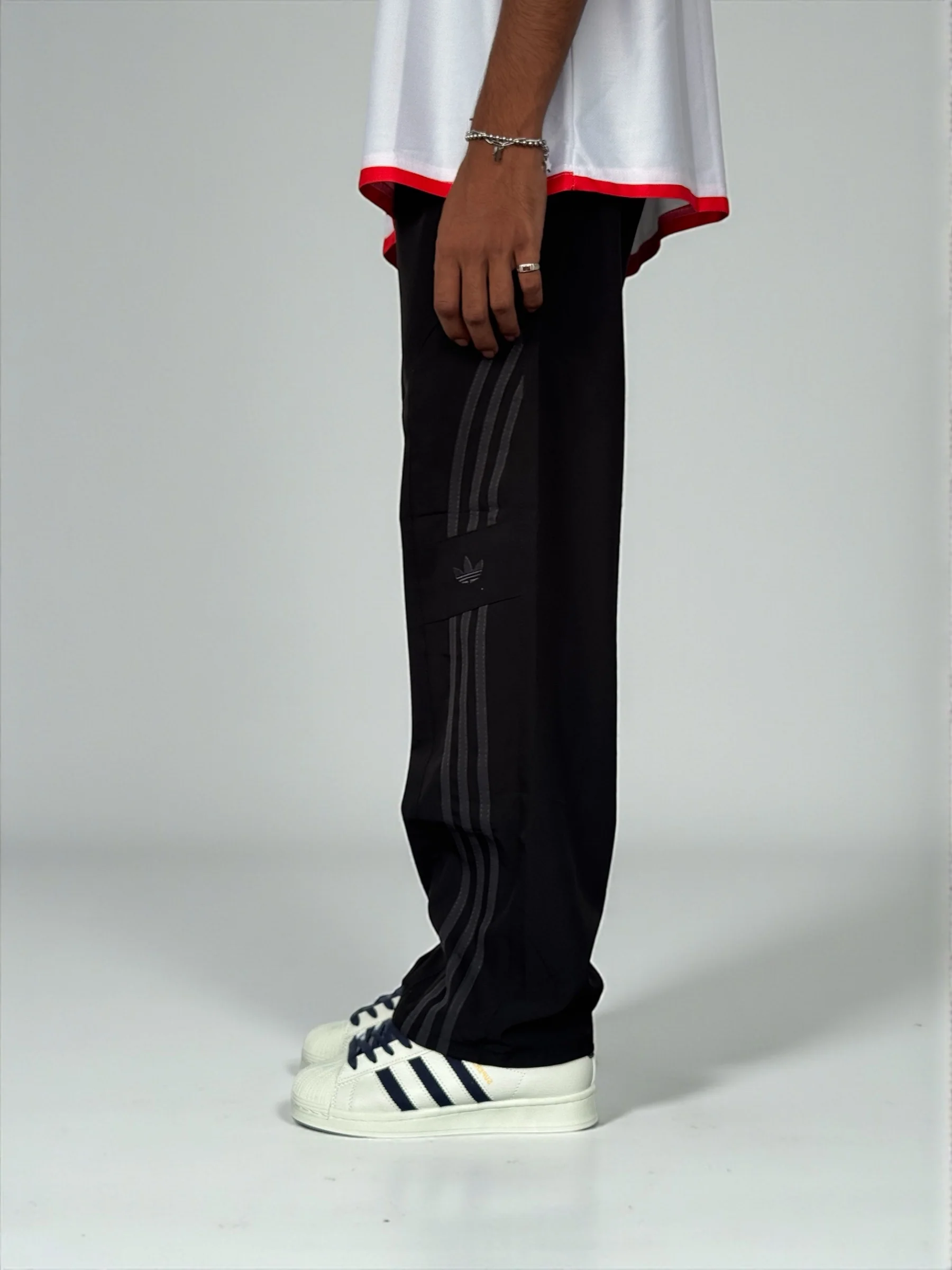 Premium straight-fit track pants for a clean, modern look (black with gray ) Embroidery logos